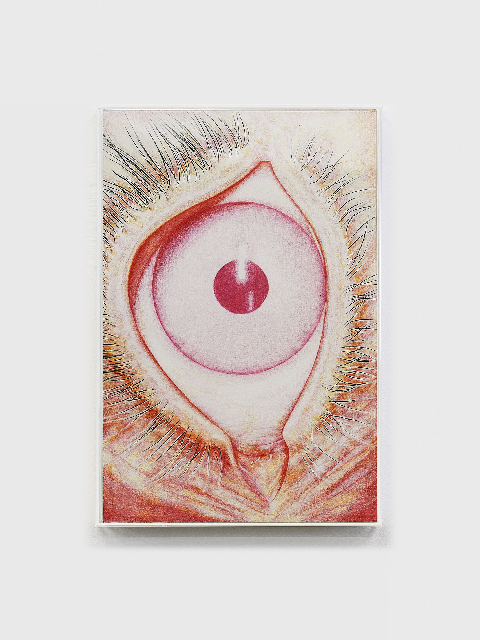Punctum (Eye), 21 x 31cm, coloured pencil on paper in perspex frame, 2019